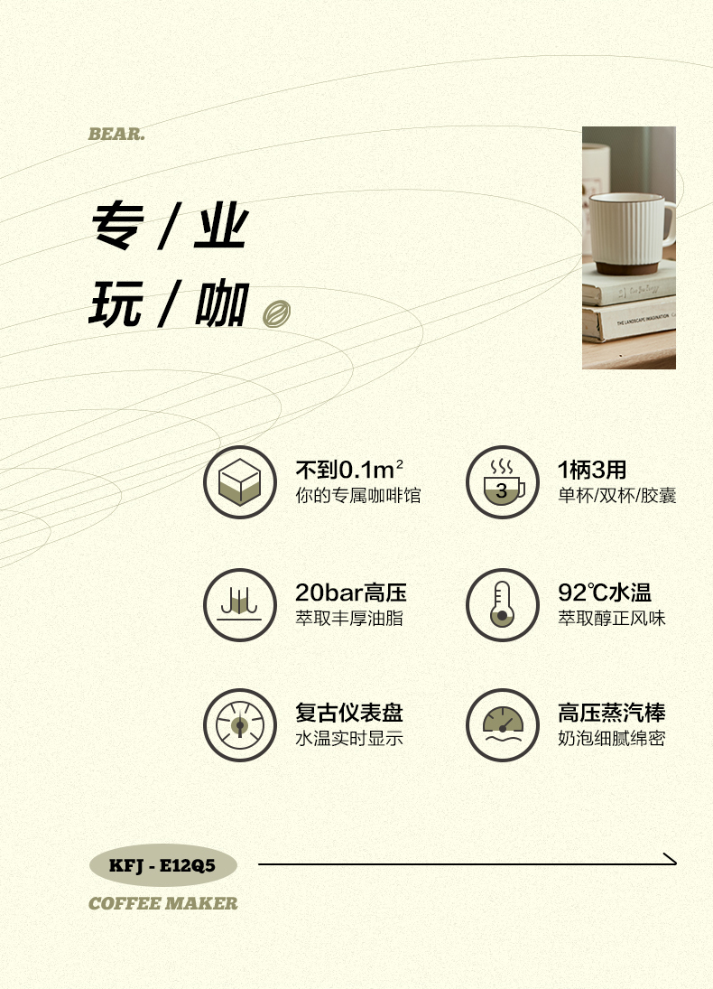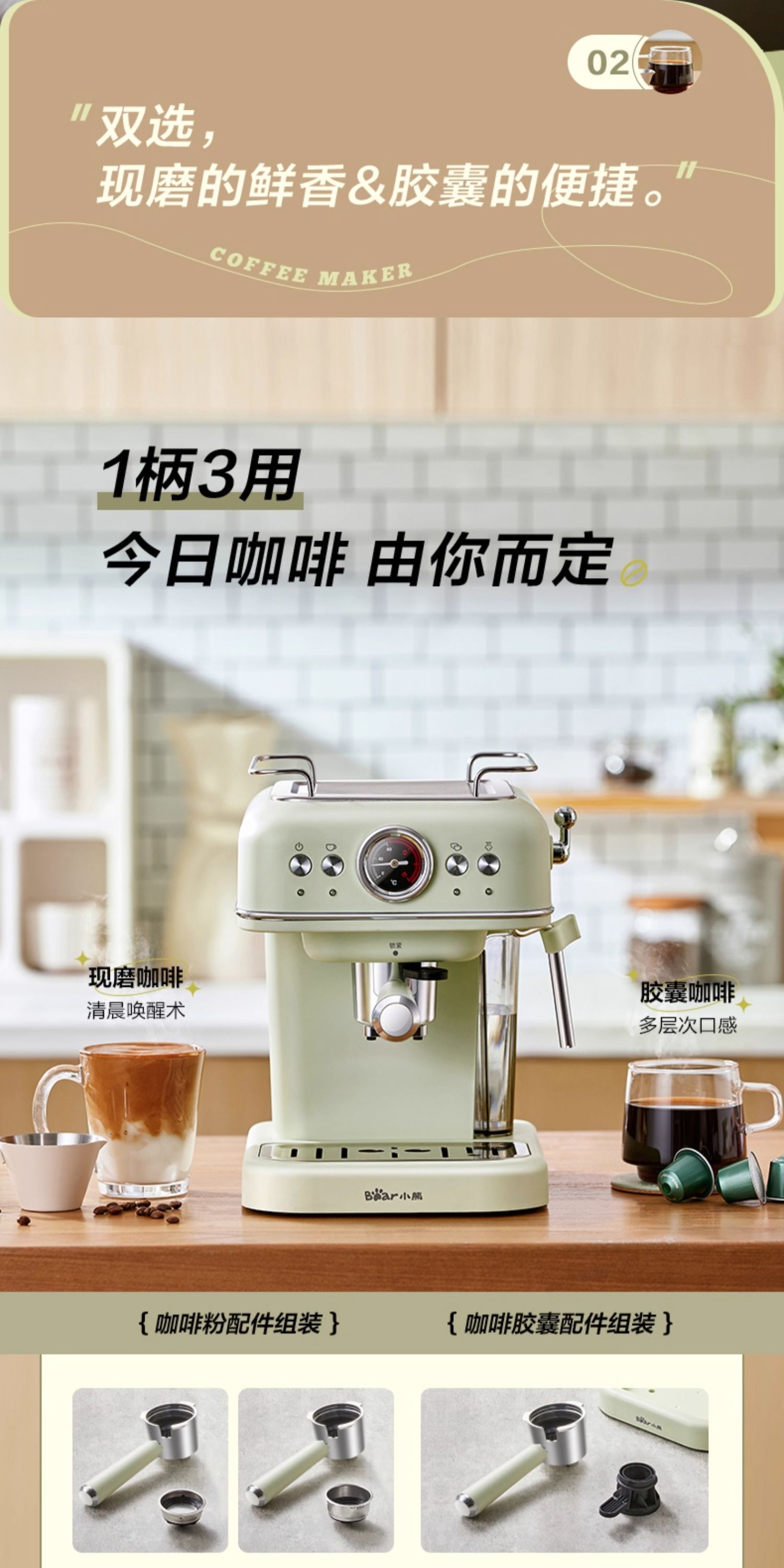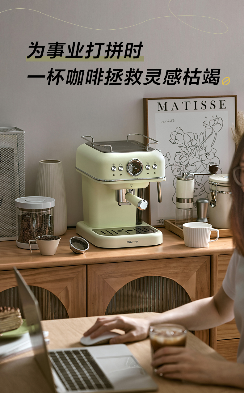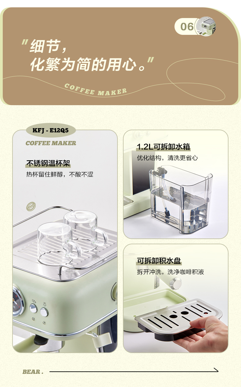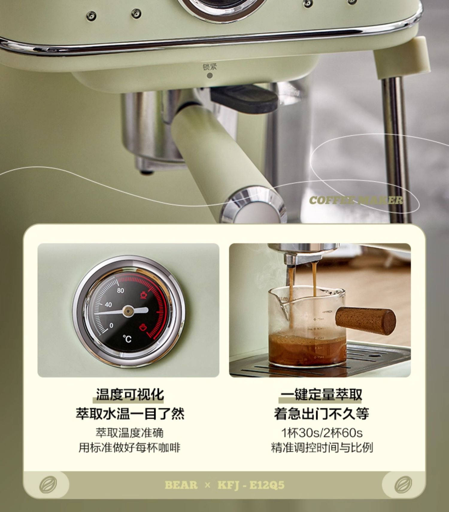 小熊(Bear)意式半自动 复古咖啡机小白可打奶泡 20Bar 高压萃取强劲蒸汽奶泡 【胶囊/咖啡粉两用】KFJ-E12Q5