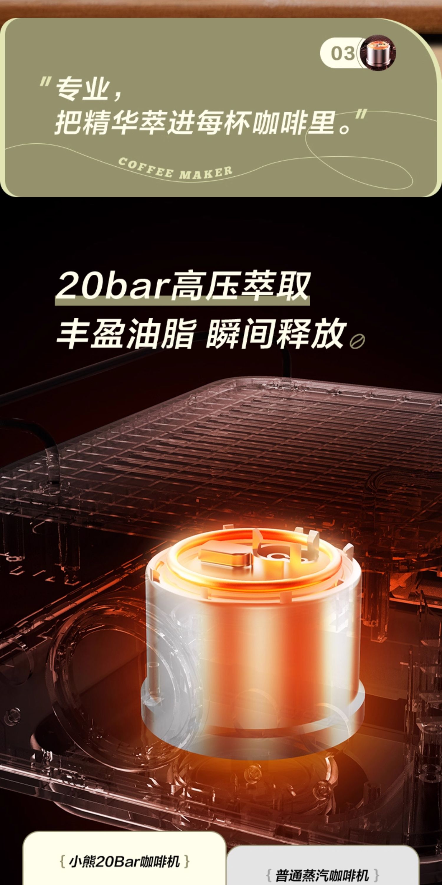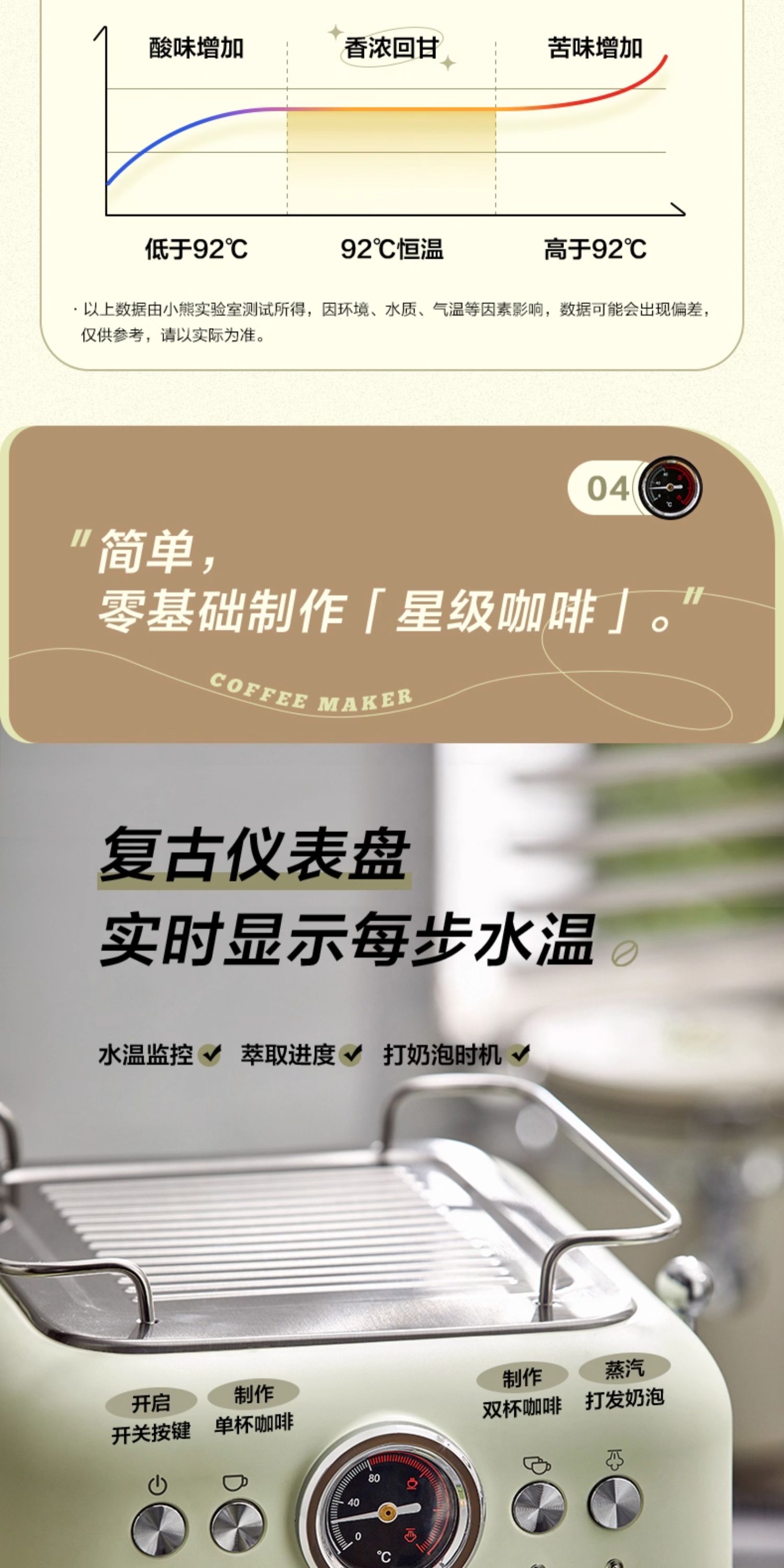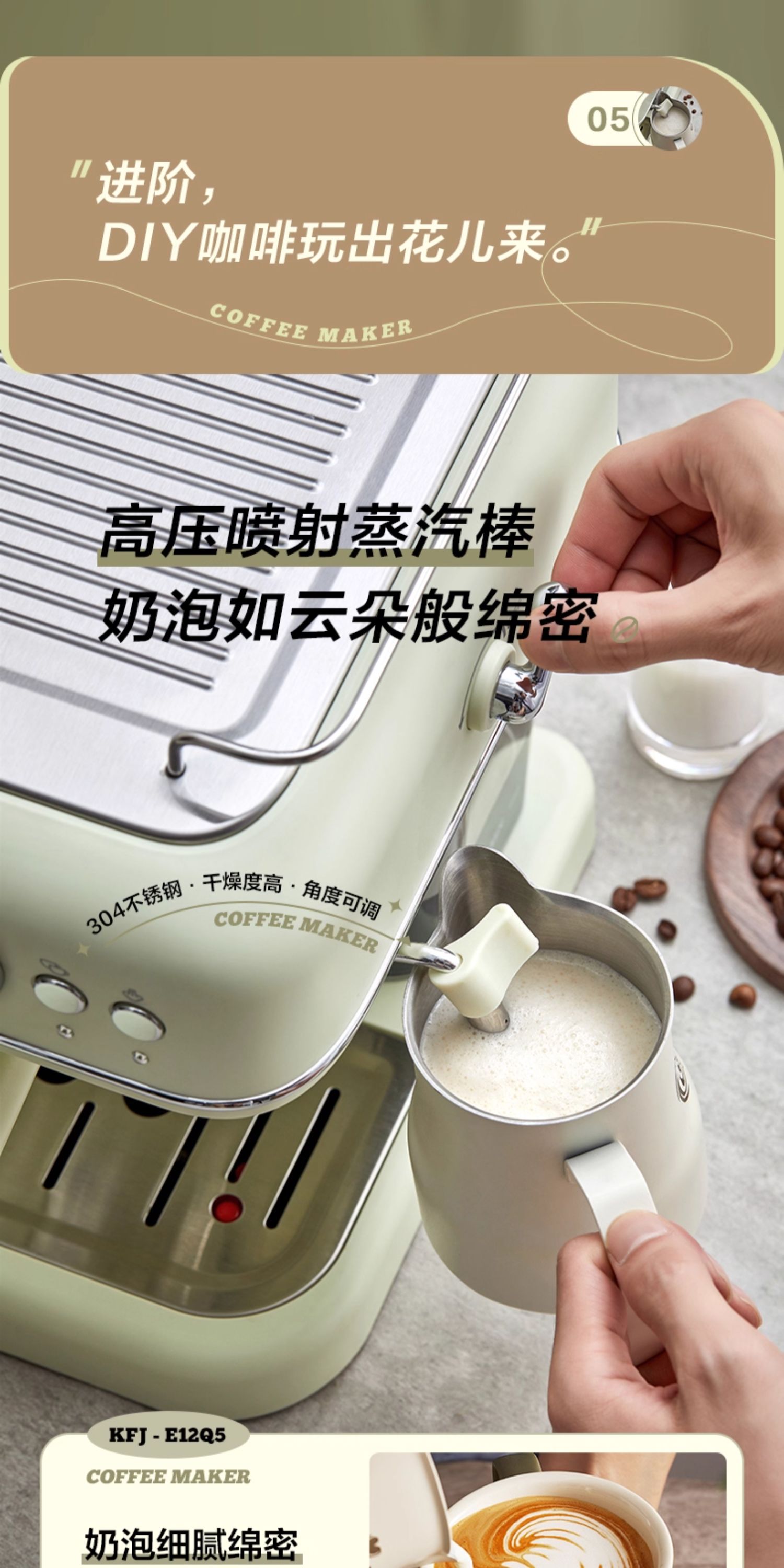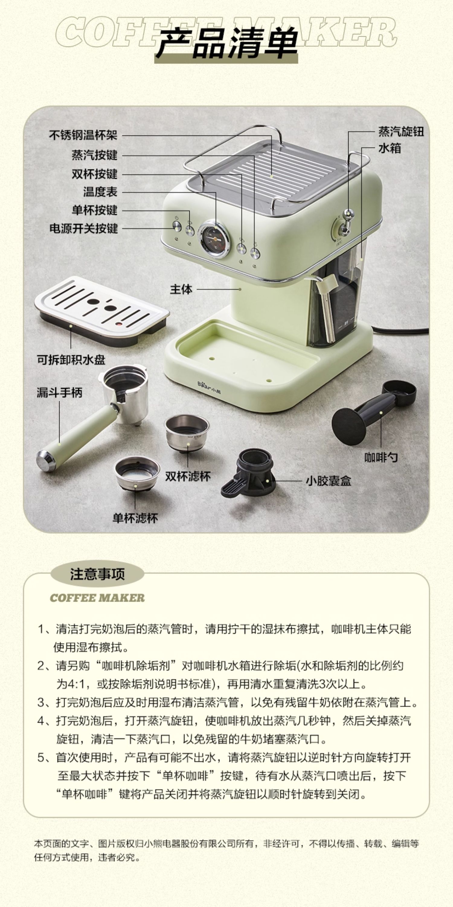 小熊(Bear)意式半自动 复古咖啡机小白可打奶泡 20Bar 高压萃取强劲蒸汽奶泡 【胶囊/咖啡粉两用】KFJ-E12Q5