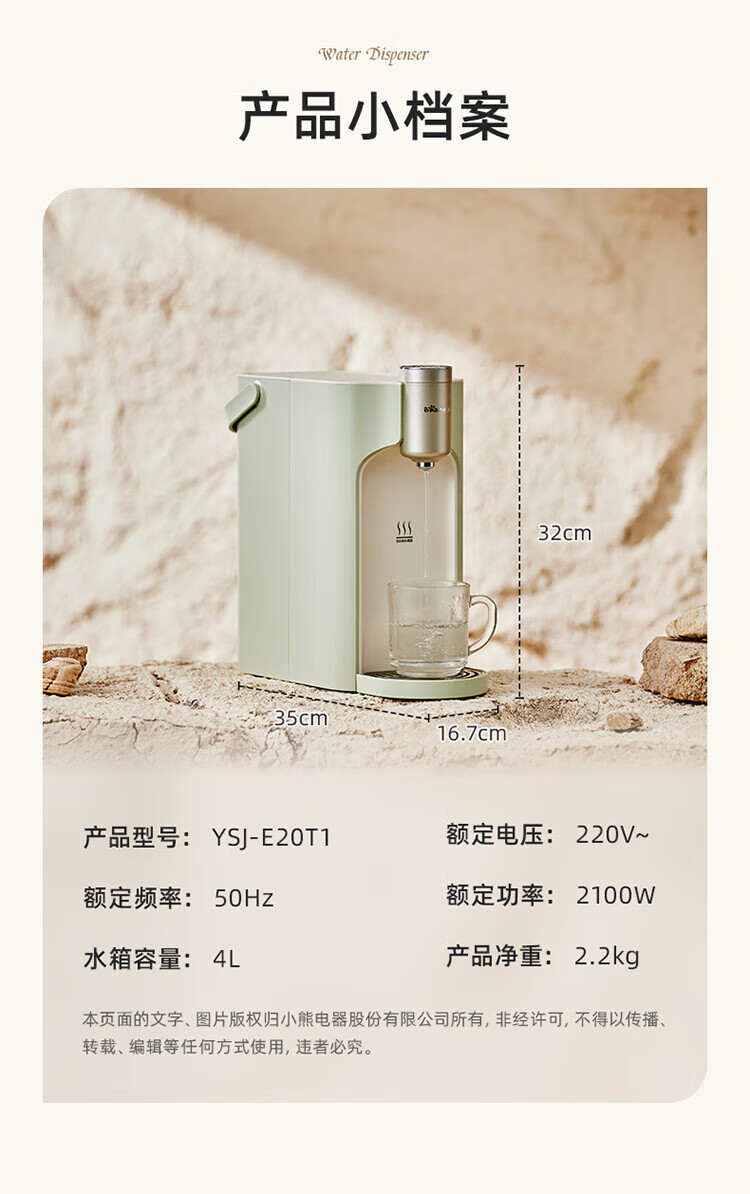 小熊(Bear)YSJ-E20T1即热式饮水机免安装速热4L双抗水箱净饮一体机直饮 YSJ-E20T1 温热型